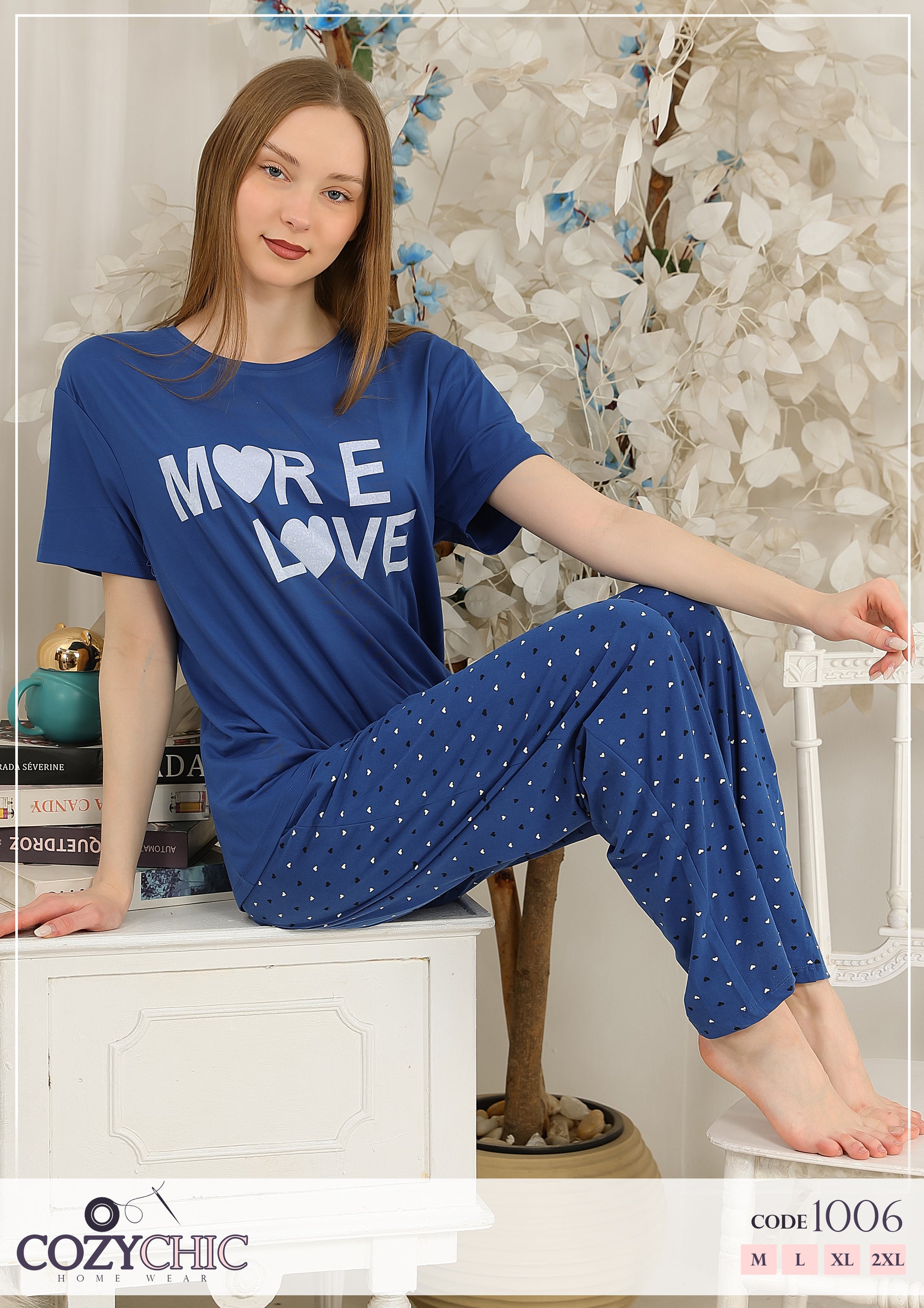 "More Love" Short Sleeves Pajama Set Big Size - Navy